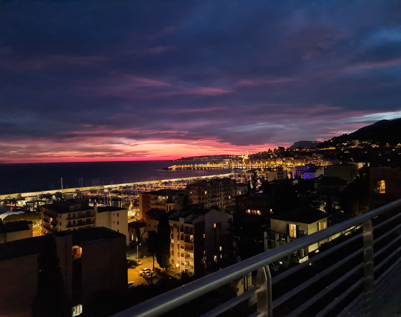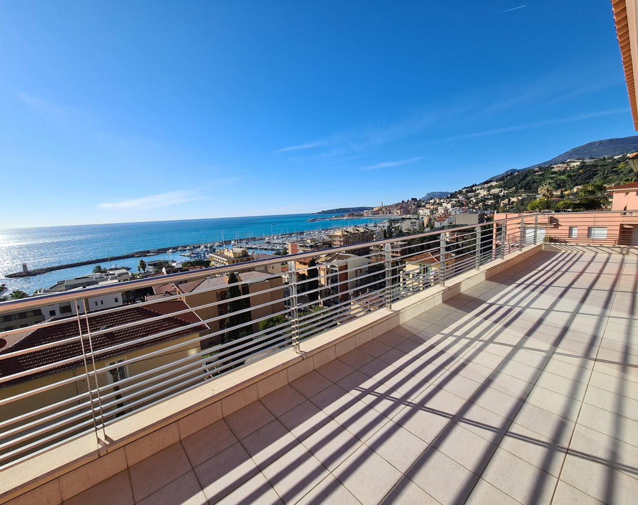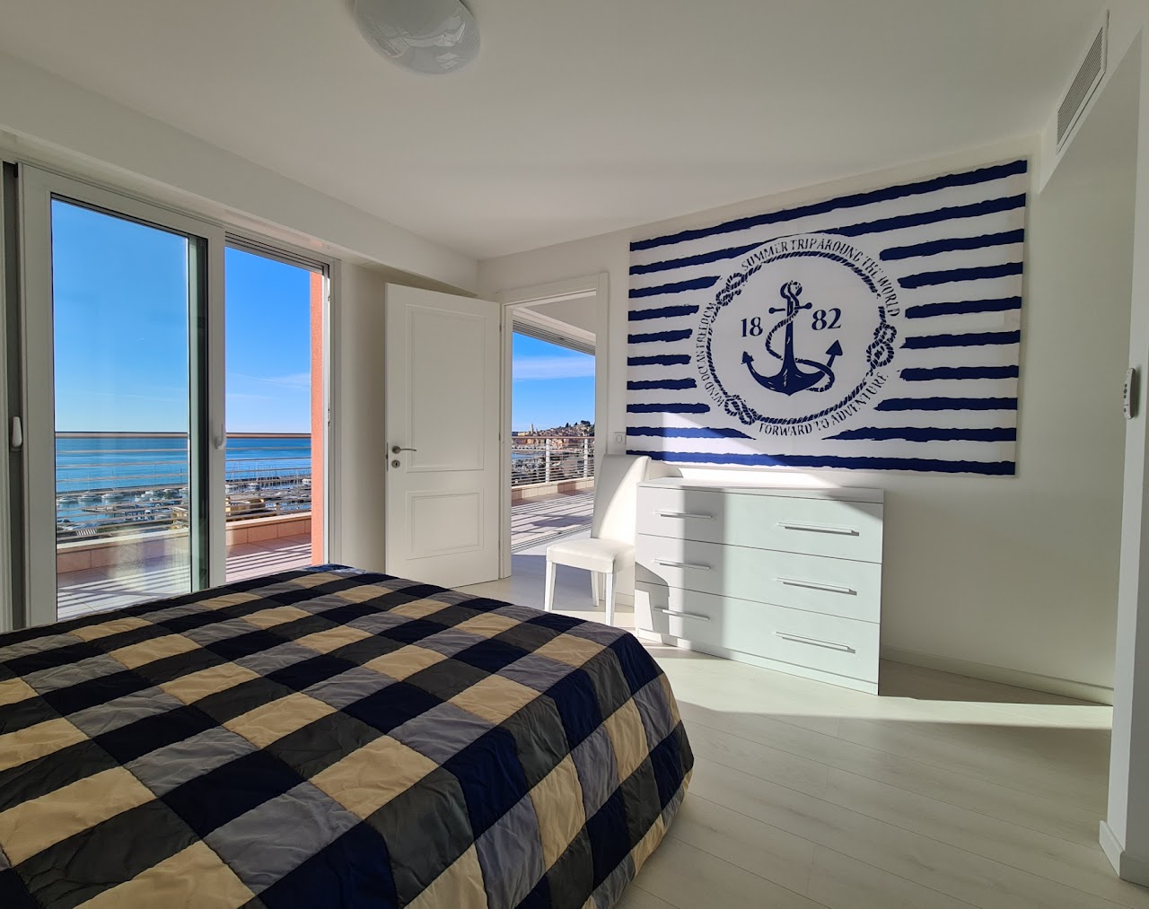 N. 01 – 3 Bed rooms with terrace and sea views. This fabulous penthouse apartment with magnificent views is situated in the luxurious area of Garavan. Close to the train station, beaches and shops. Fully air conditioned. Elevator to garages. Double glazed sliding doors. Large terrace. Small building of 5 apartments with shared pool.